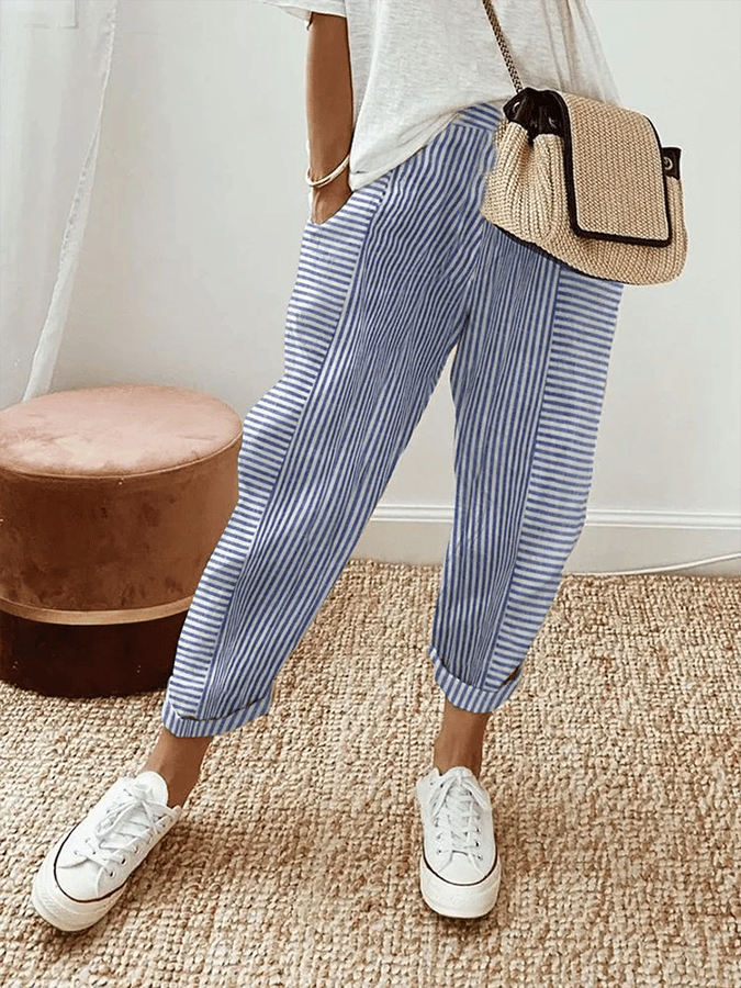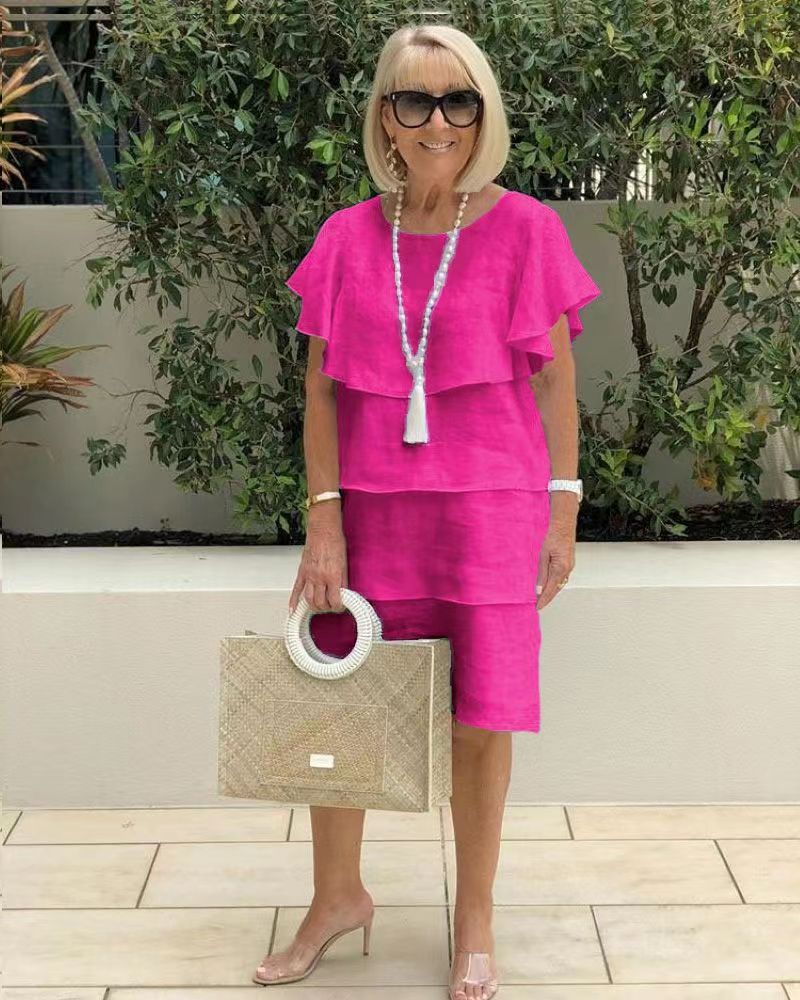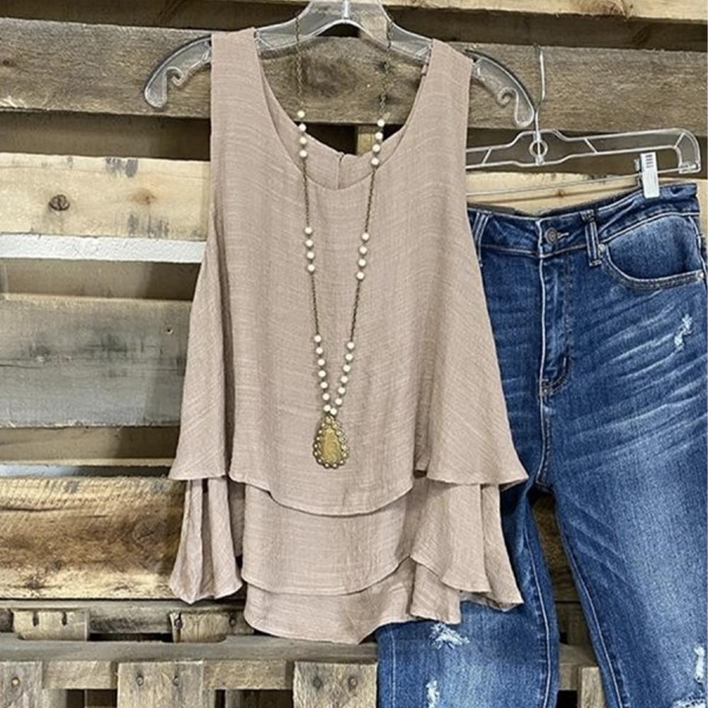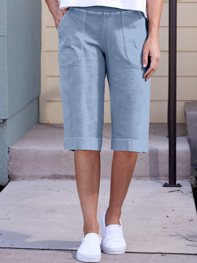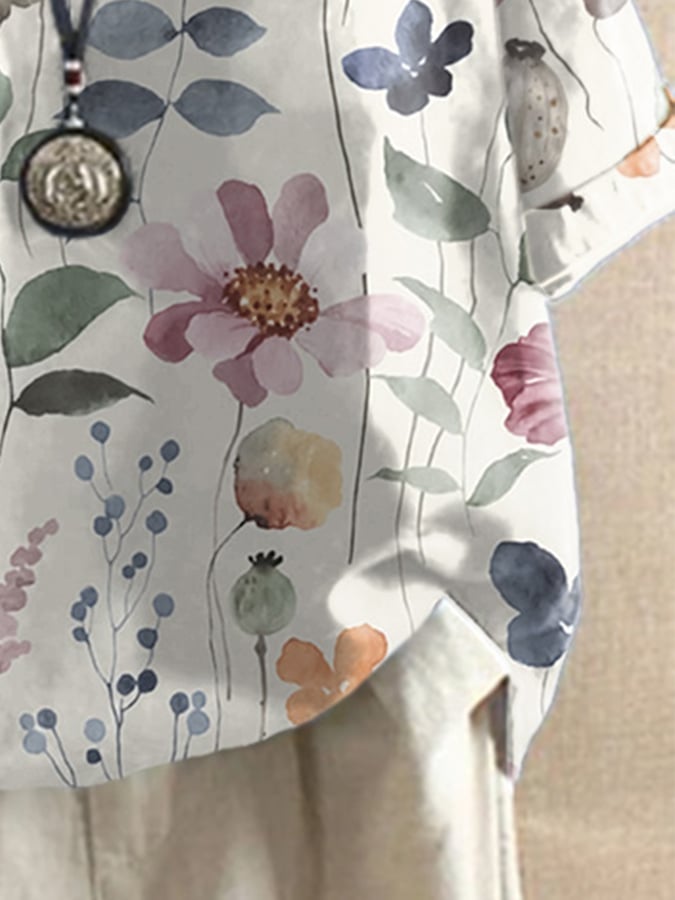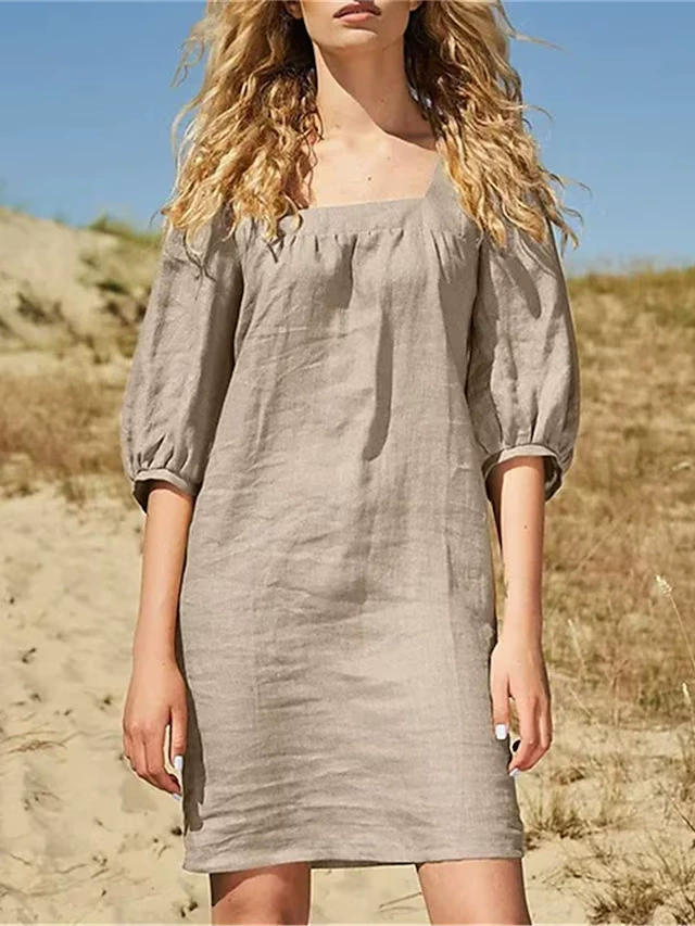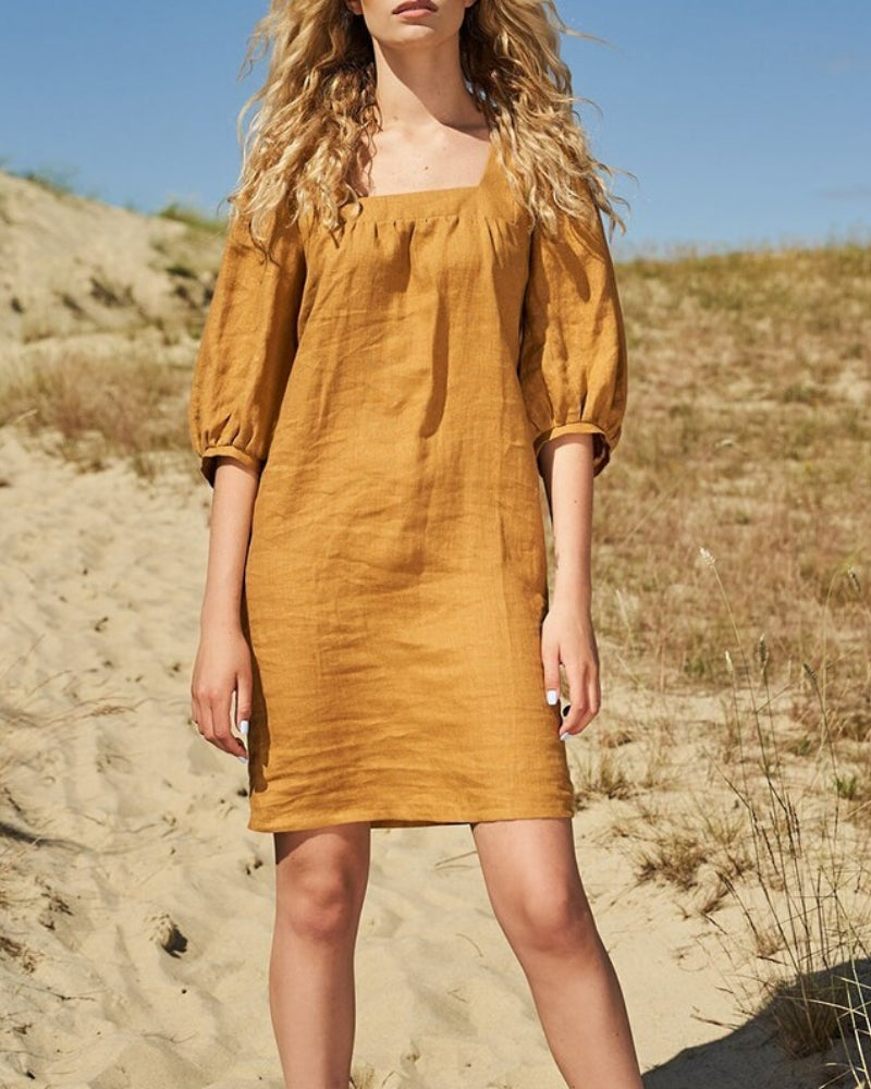 Women's Cotton Linen Three-quarter Sleeve Crew Neck Shirt
