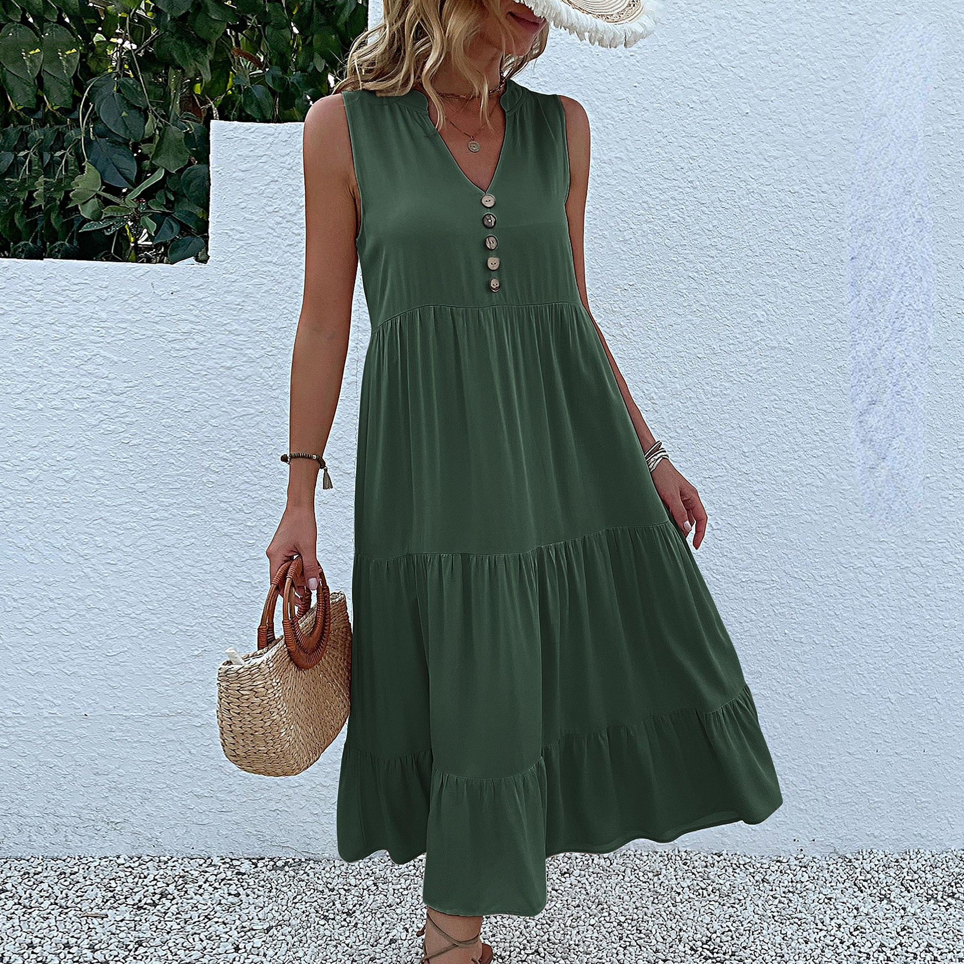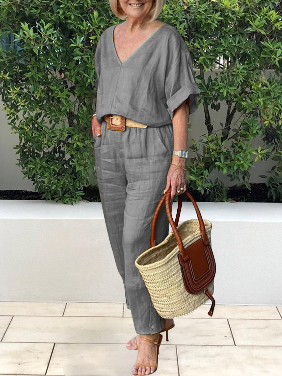 Solid color V-neck button loose short-sleeved T-shirt women's top