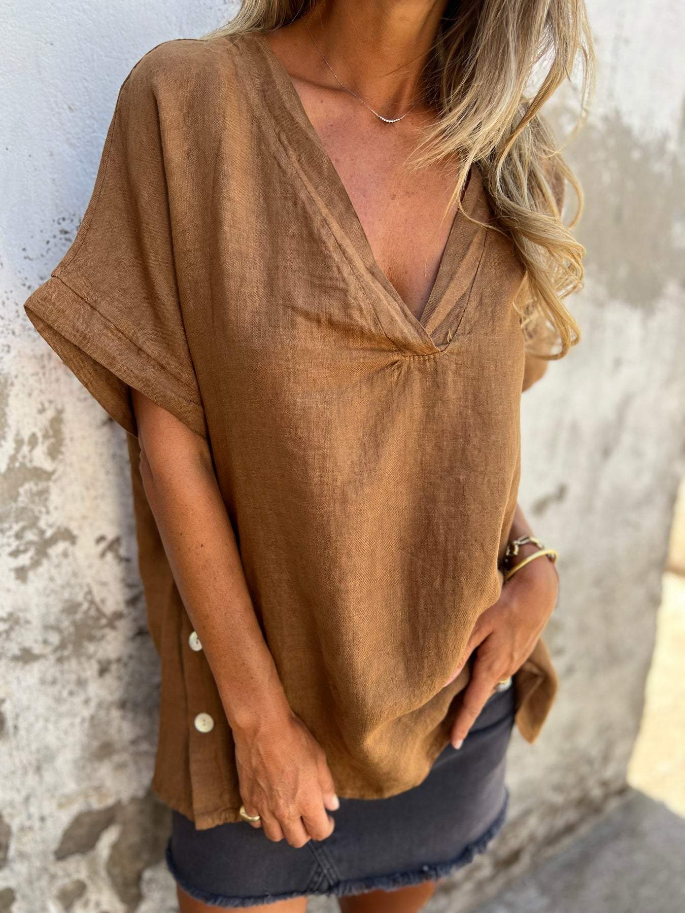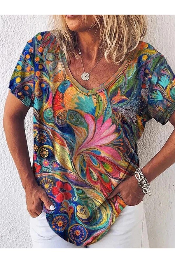 Solid color V-neck short-sleeved plus size women's T-shirt