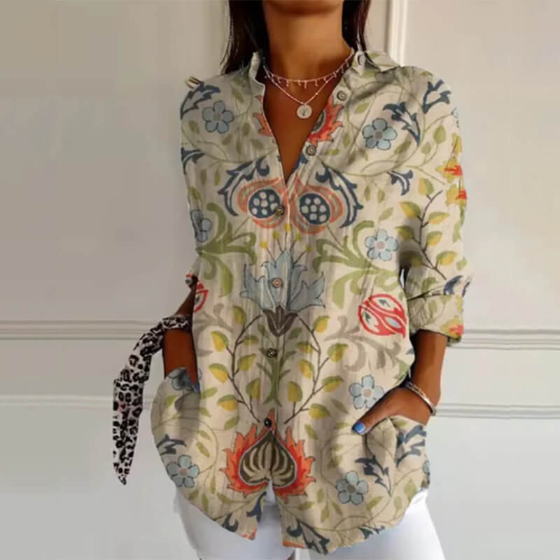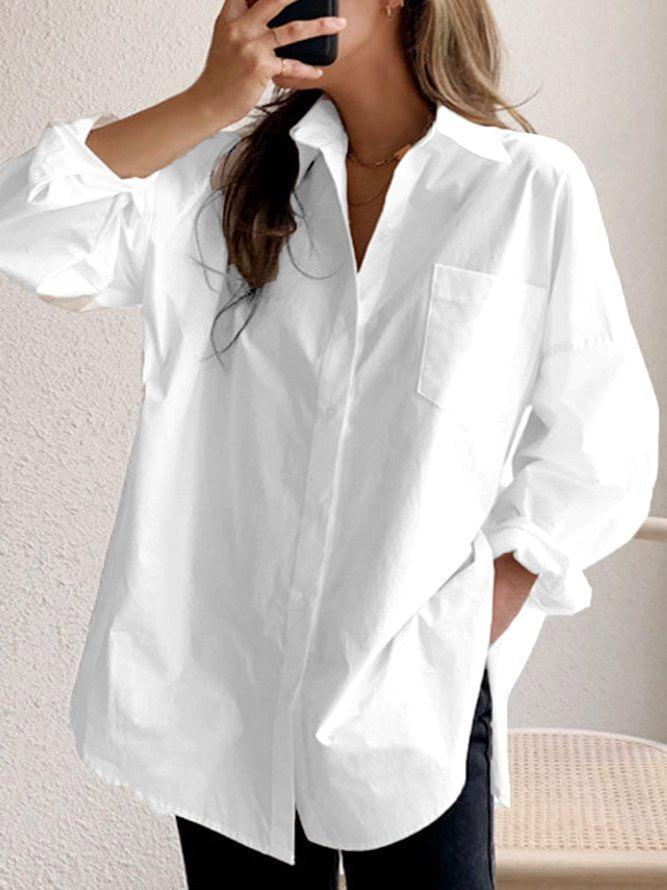 Women Solid color cotton and linen long sleeve shirt