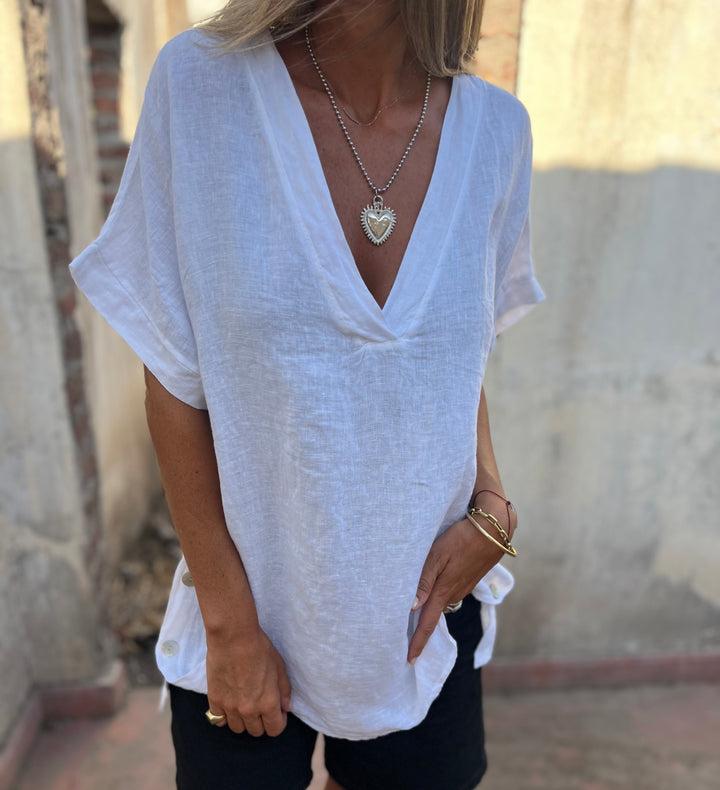 🌷V-neck studded button-down sleeveless shirt