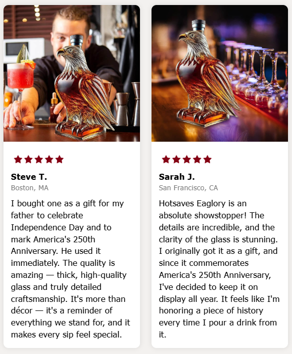 Crafted with intention and built to last, this bald eagle–shaped glass bottle allows you to proudly display your American spirit in your home, on a bar shelf, or gift it to someone who truly understands the meaning of service and sacrifice.